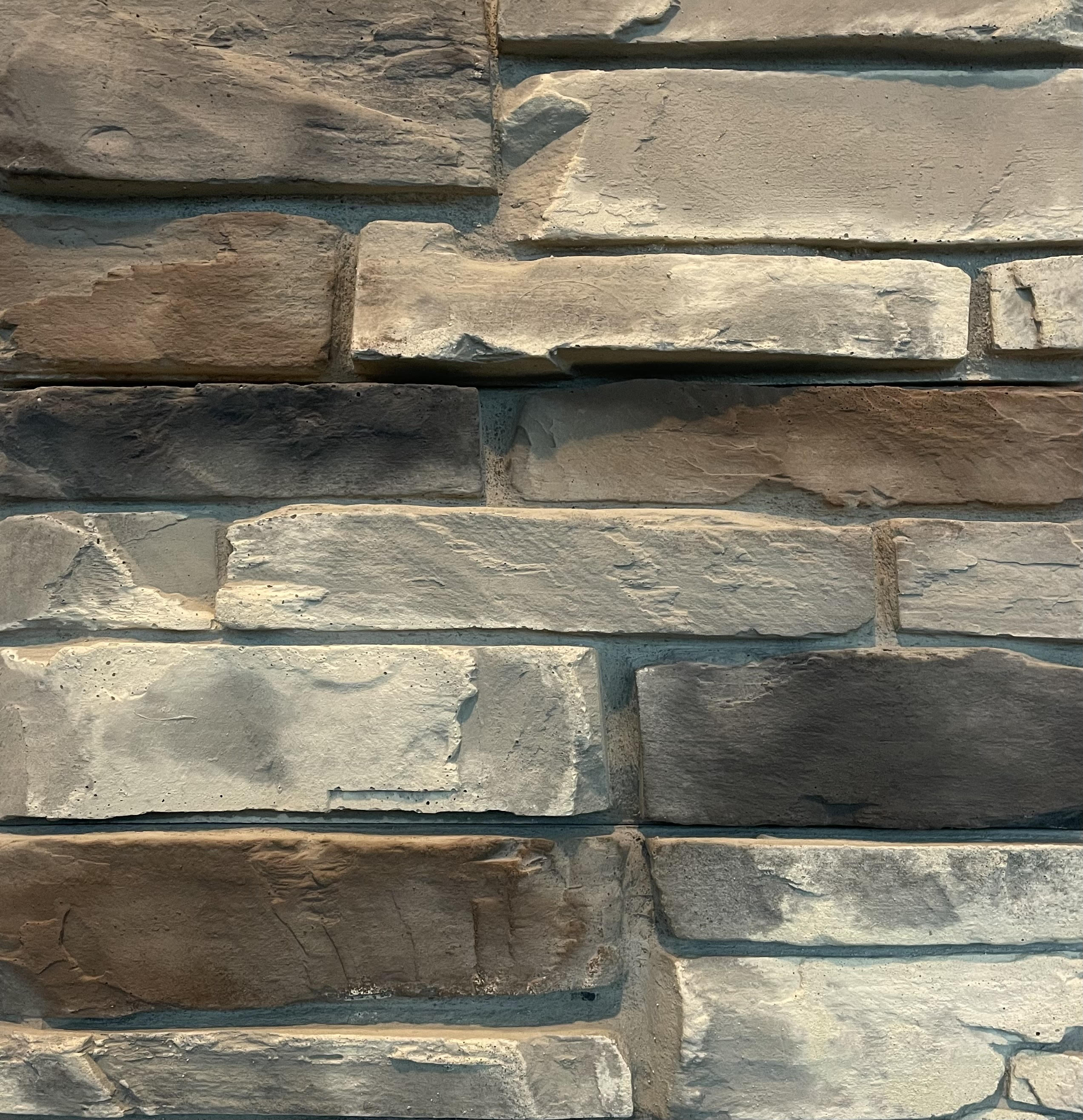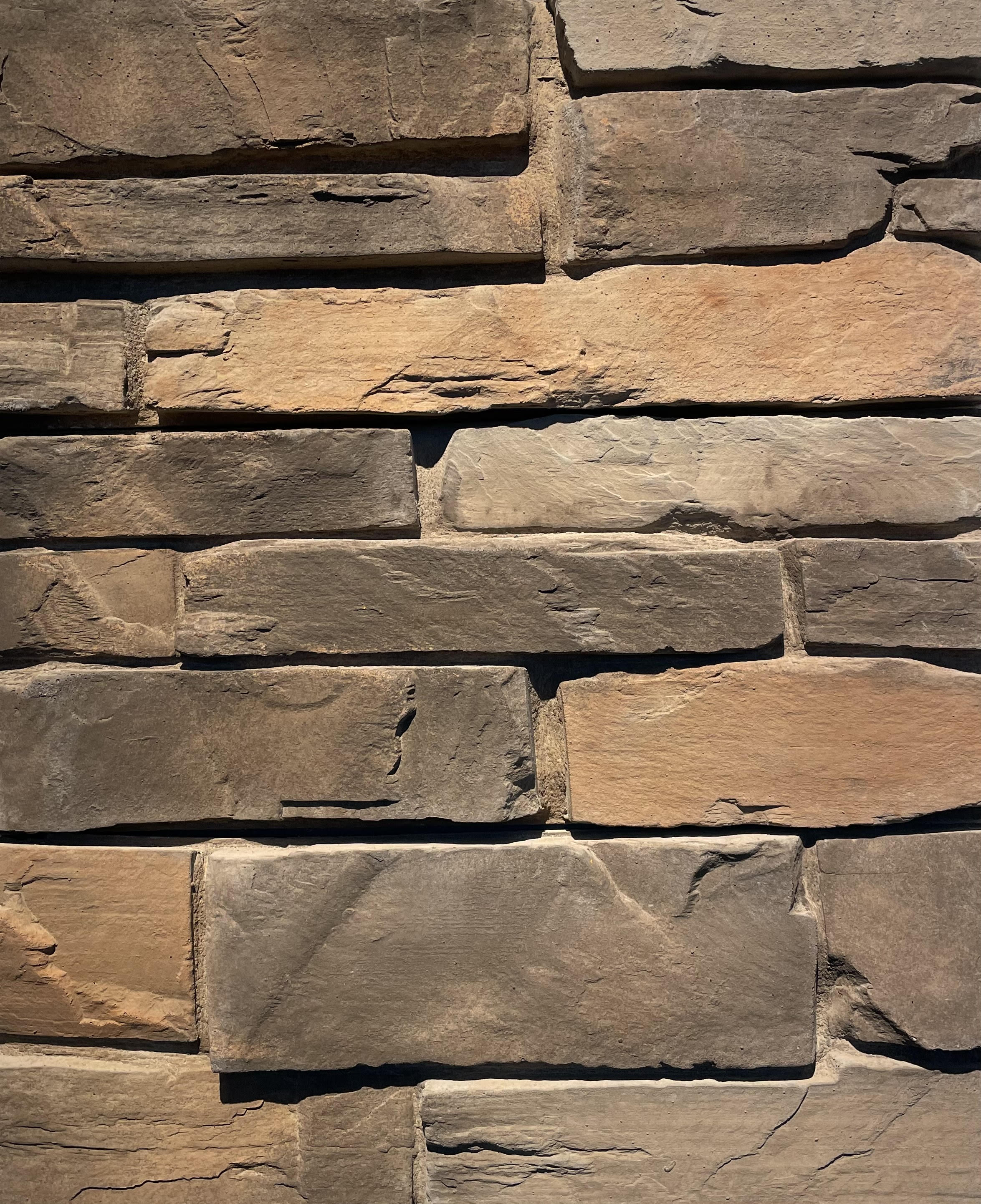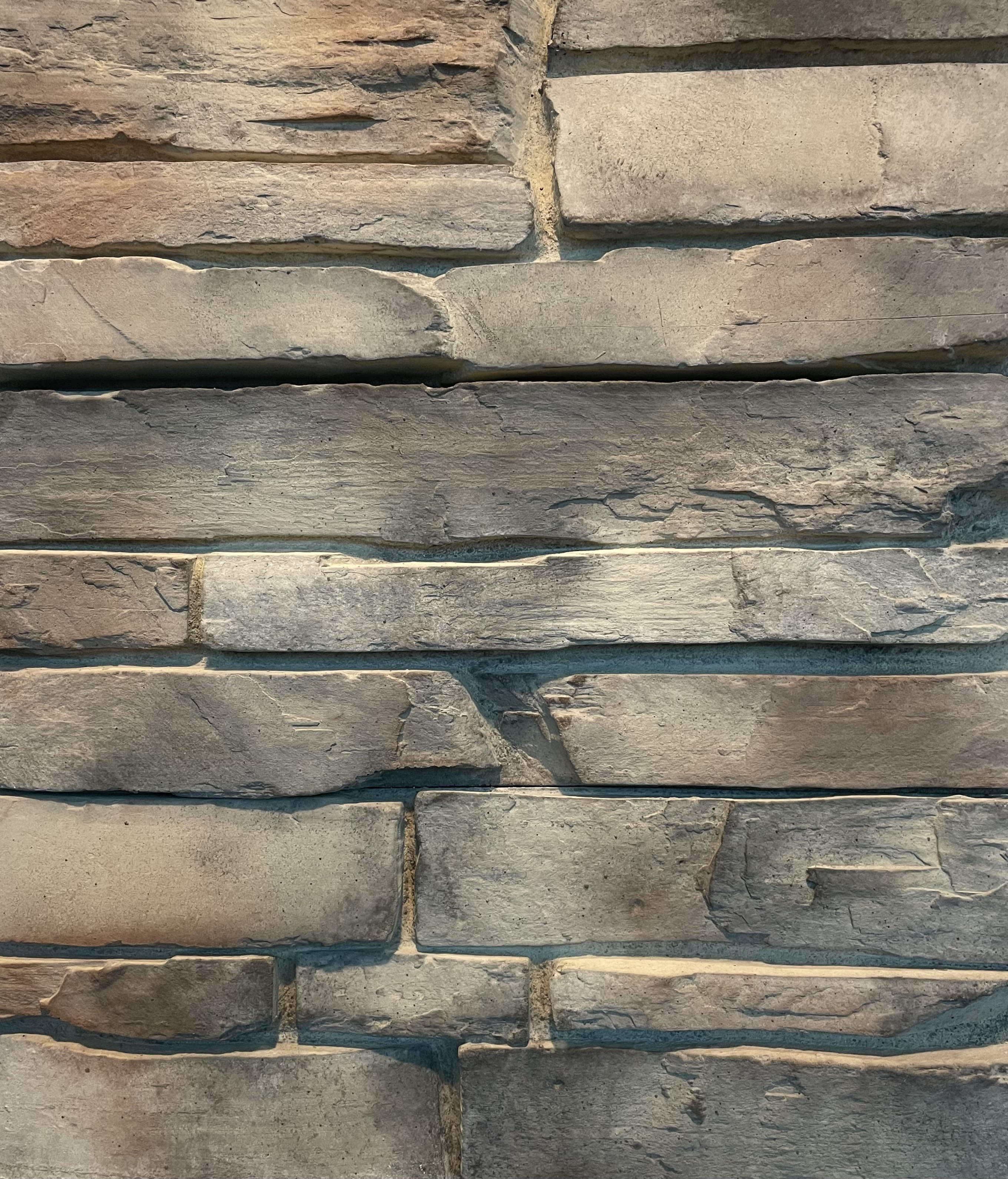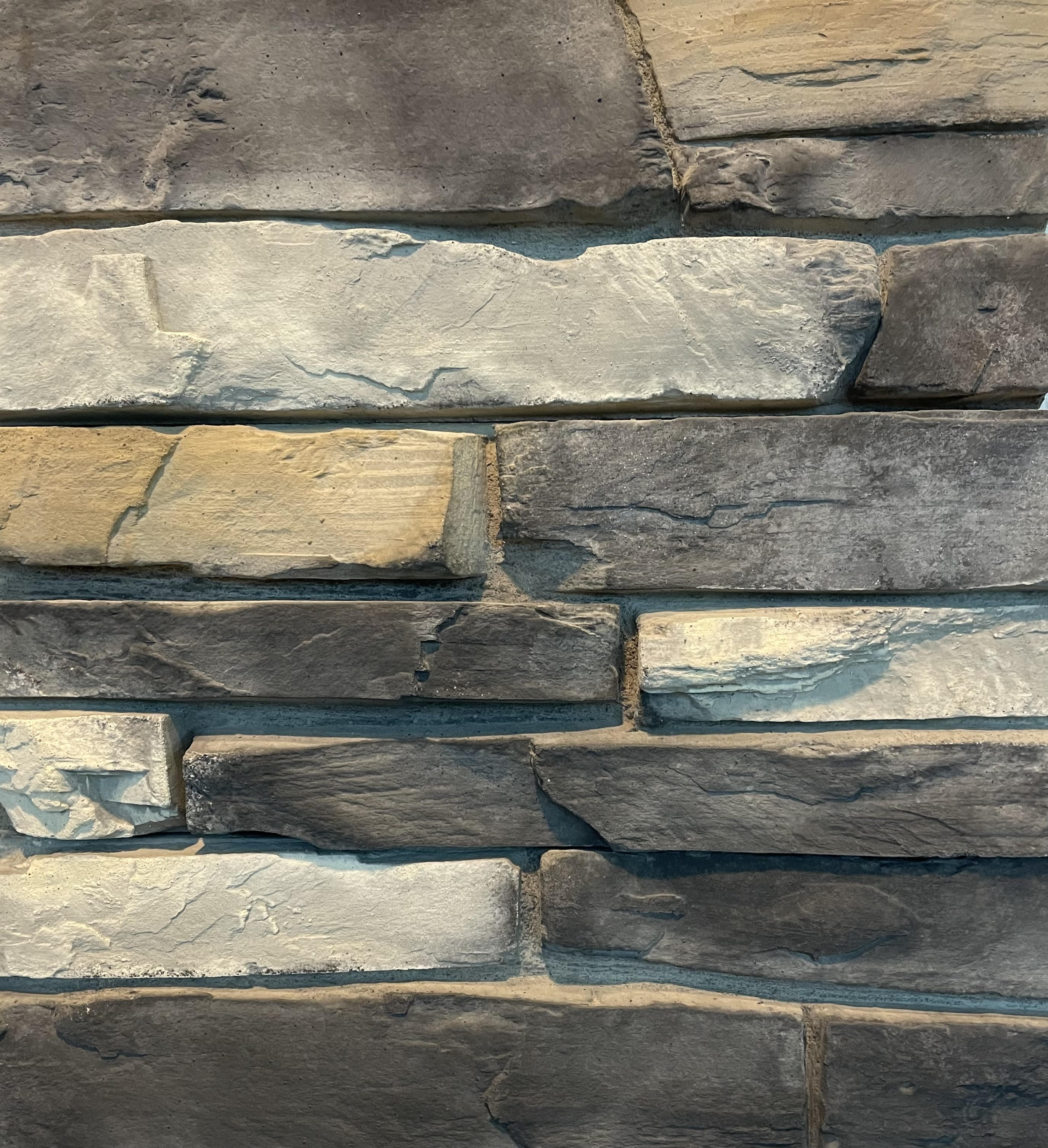 This stone veneer panel product features a highly detailed, primarily split faced stone appearance with some weathered edges. Country Ledge is a tight fitting paneled product that does not require any starter strips or grout joints to complete the installation.